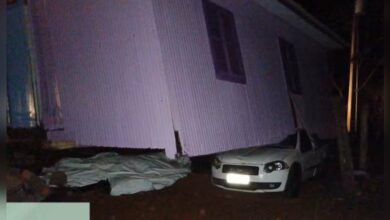 SC: Vendaval durante tempestade arranca casa que foi parar em cima de carro