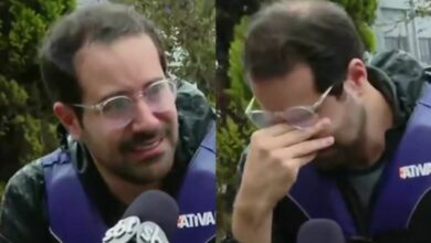 Apresentador do SBT não se segura e cai no choro durante cobertura no RS: “Muito difícil”