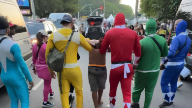 Policiais fantasiados de Power Rangers prendem suspeito com sete celulares em bloco de SP