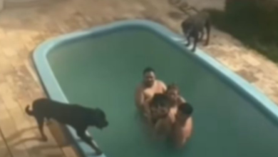 [VÍDEO] Família é cercada por cães Rottweiler e fica aterrorizada dentro de piscina durante férias; assista